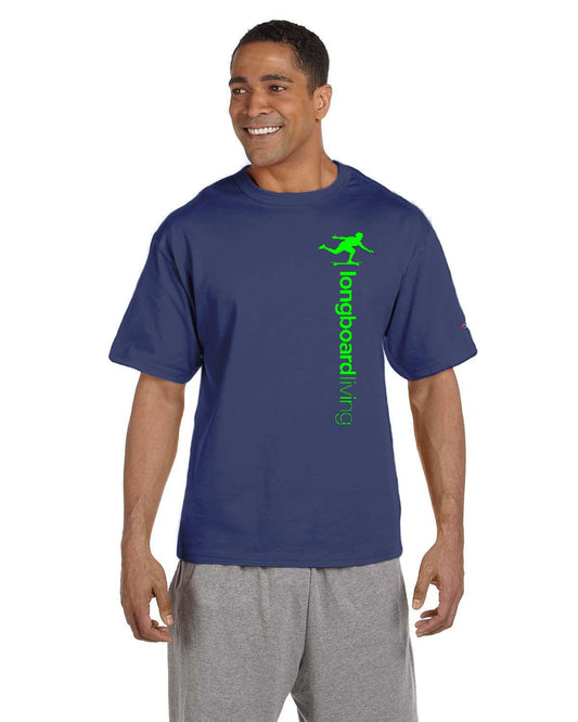 Longboard Living Vertical Logo Shirt - Green Print on CHAMPION