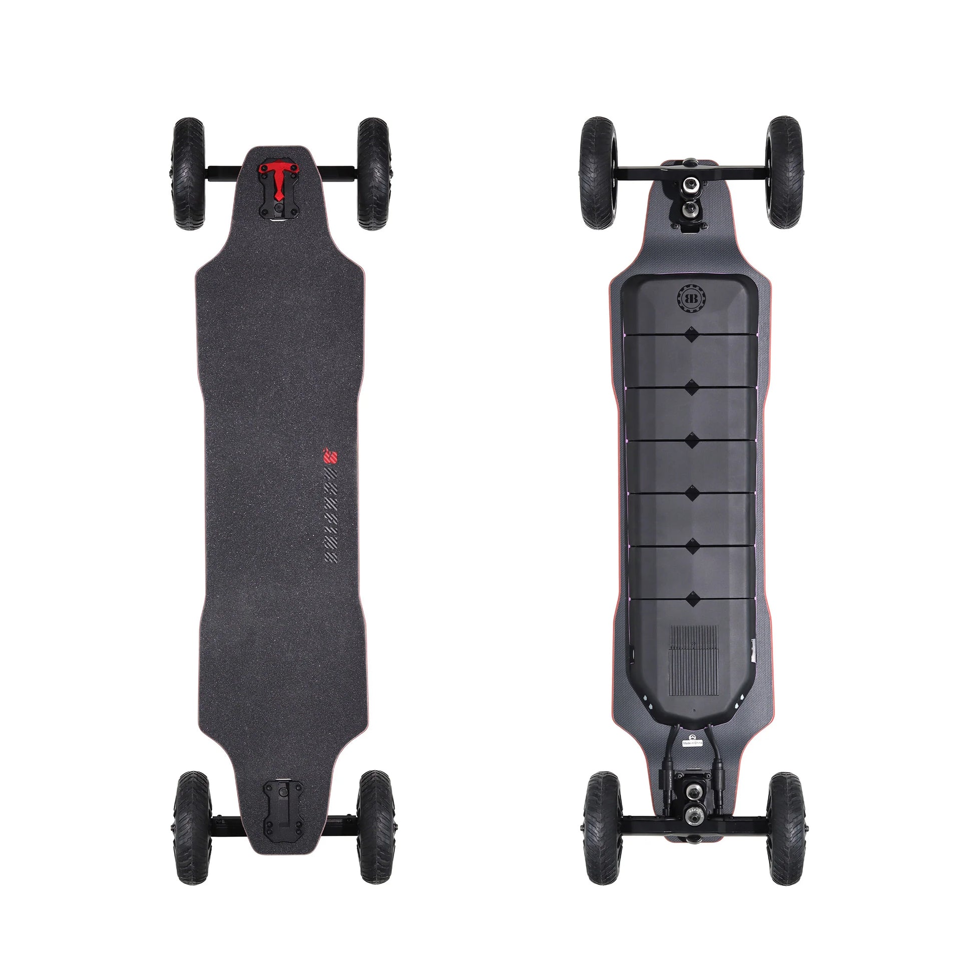 Backfire Ranger X6 All Terrain Electric Skateboard with 1500W X2 Ultra High Power Ultra High Torque Motors and 12S High Voltage High Efficiency Electronic System. Comes with a long range 30km battery, LED display Major V3 updated remote, shock absorbing deck and many other amazing performance enhancing features.
